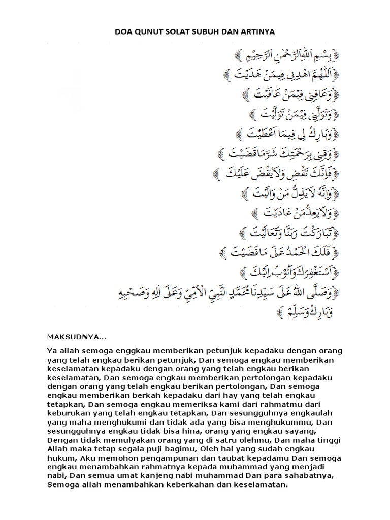 Download Doa Qunut Dan Artinya Pictures. Karena sholatnya tidak akan sah jika tidak sesuai dengan rukun sholat. Maka doa di atas dibaca ketika sholat subuh sendirian.