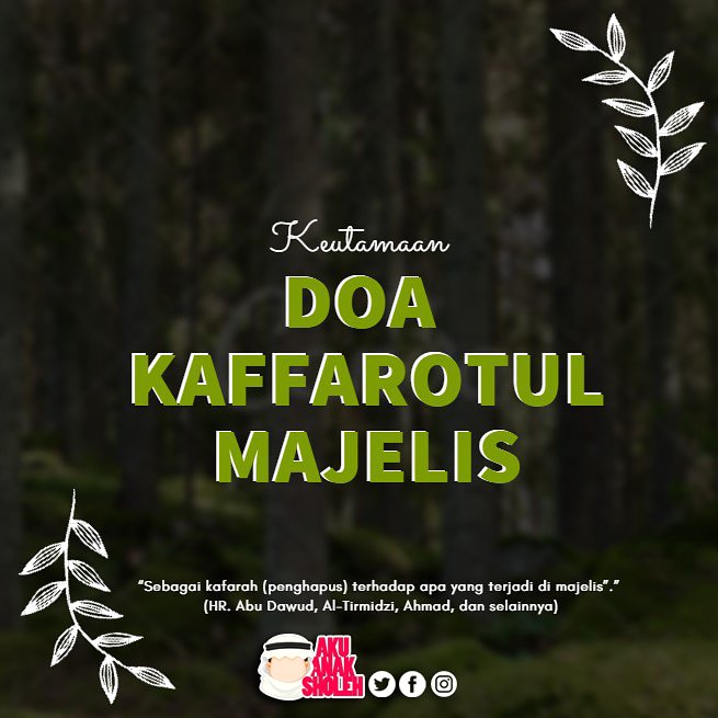 Itulah doa kafaratul majelis arab, latin dan terjemahannya. Doa penutup majelis juga biasa disebut dengan doa kafaratul majelis. Doa kafaratul majlis dibaca di akhir, bukan di awal majelis. Doa kafaratul majelis atau yang sering juga disebut doa penutup majelis adalah doa yang dibaca ketika anda atau sebuah kelompok sedang berada di sebuah pertemuan atau majelis dan hendak.